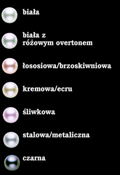 odcieniu np. różowym, kremowym oraz perły zółte, brunatne i czarne.