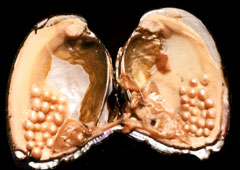 w nogę małża. Po kilku latach 'zarodek' obrasta warstwami masy